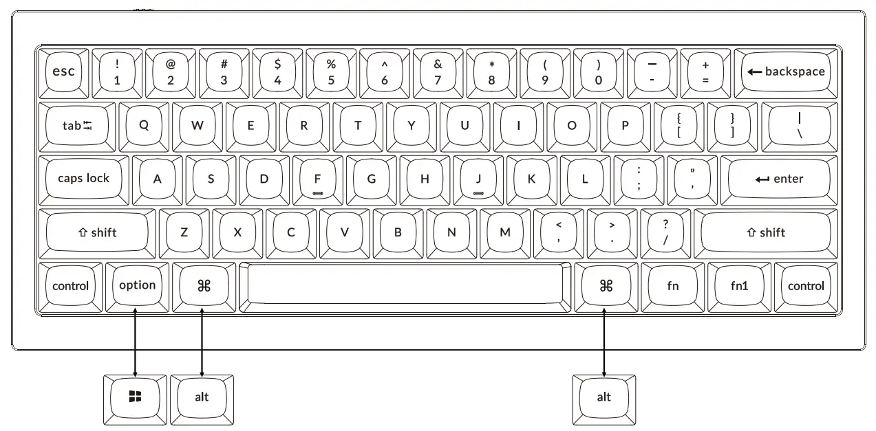 If you are a Windows user, please find the appropriate keycaps in the box, then follow the instructions below to find and replace the following keycaps