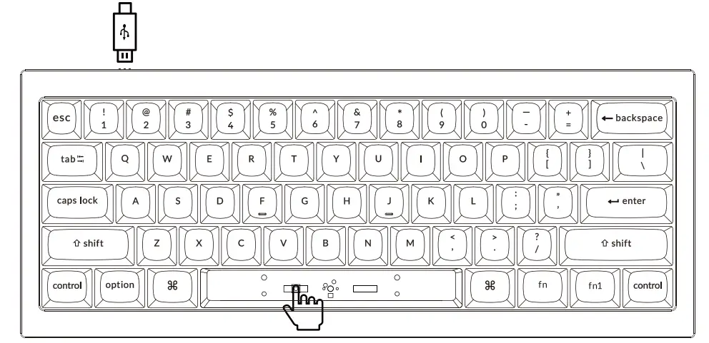- Hold the reset key while plugging in the power cable and then release the reset key. The keyboard now will enter DFU mode.