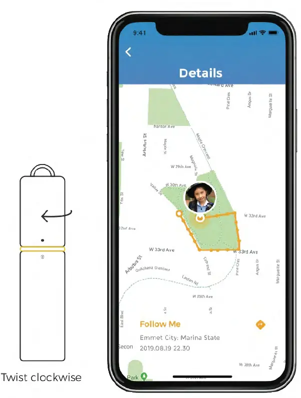 Twist Care Go to turn on the Follow Me Mode, the status indicator will turn yellow. and your protectors will see your GPS location in real time.