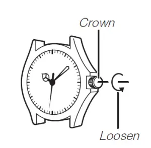 it towards you to unscrew it. Then pull the crown out. Avoid applying undue force when pulling. The watch loses its water resistance while the crown is unscrewed. After performing a crown operation, fully screw the crown back in.