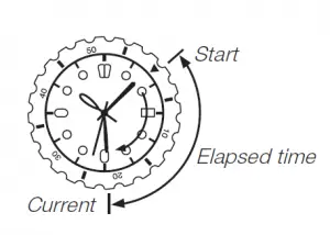You can rotate the bezel to align its ▼ mark with the minute hand. Then you will be able to tell how much time has elapsed since aligning the ▼ mark.
