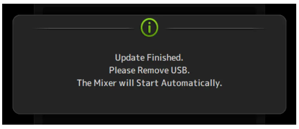 When a message indicating completion of the update appears, remove the USB flash drive