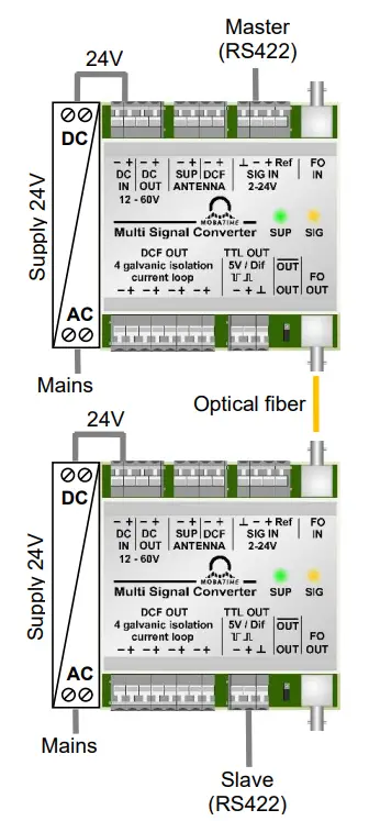 Data – fiber-optic converter RS 422 → Optical transmission to 2. Multi Signal Converter