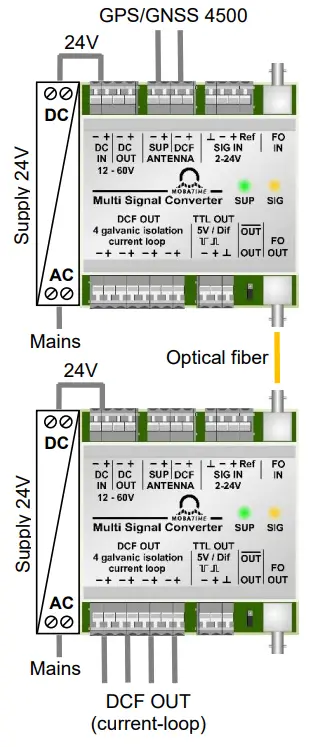 Current – fiber-optic converter DCF IN → Optical transmission to 2. Multi Signal Converter