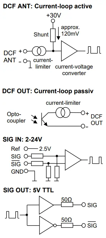 | DCF OUT | current signal (current loop): max. 500kHz voltage signal (open collector): max. 50kHz |
