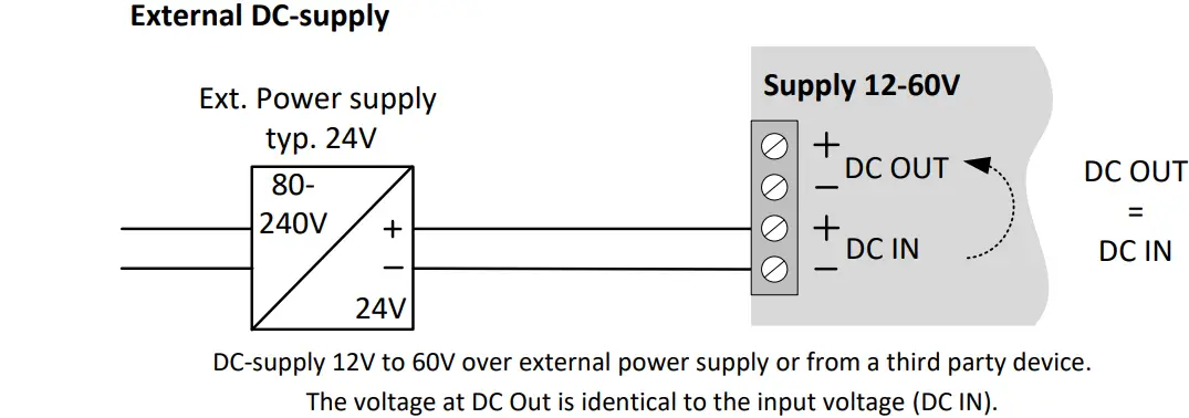 - Wide power input voltage range 12 – 60 VDC. Either via DC Input or external DIN Rail Power Supply.