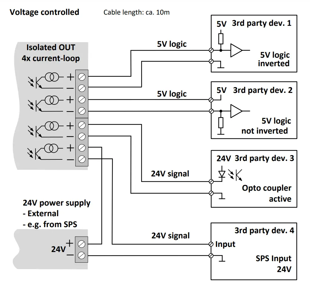 - Cascading possible, without relevant delay of the current loop outputs