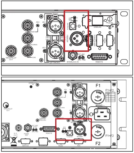 logic. The automatic exchange takes place to select the digital input between balanced (AES/EBU) or optical (TOSLINK). - Through the two trimmers it is possible to adjust the converted digital input level, to normalize the R and L signals with respect to the adjusted level for the analog input.