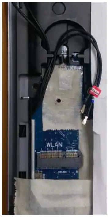 Remove 2 external Wi-Fi Antennas from the Wireless PCIe NGFF2230 module board and remove the Wireless PCIe NGFF2230 module board from PCIe NGFF2230 connector port