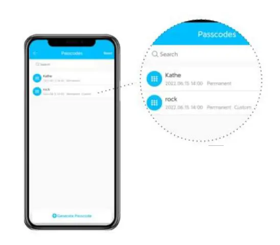 Within this page, you can 1, Edit a passcode’s number, validity, and name. 2, Delete code and view records.