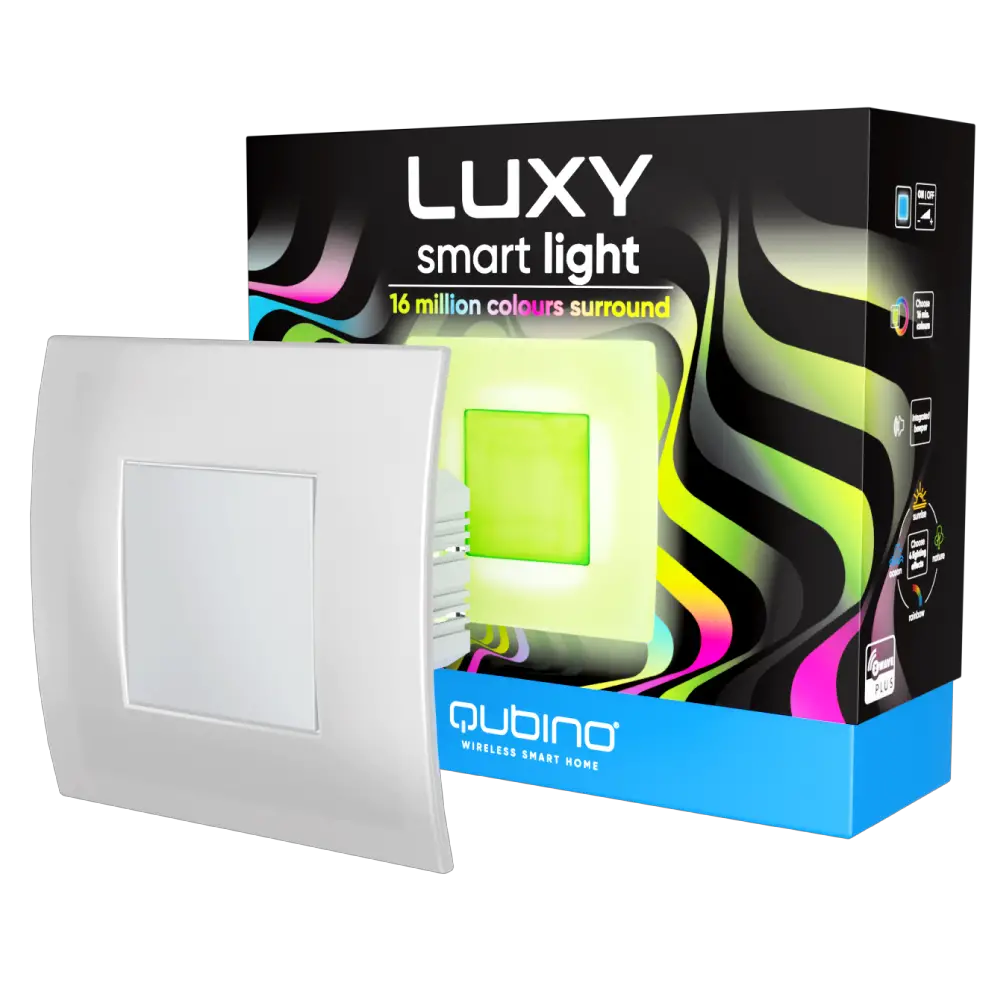 Luxy Smart Light is an innovative light source that gently illuminates in more than 16 million colours and easily fits into places of your light switch or socket. It can be used standalone, as ambient light, or as a smart home device. With an integrated beeper, it enables a unique combination of sound and visual notifications. It can be controlled with a touch on one of the 4 sides on the touch-sensitive surface (or touch screen) or remotely via a smartphone. It can be set to work automatically, according to the pre-programmed scenes, created on the Z-Wave gateway. Set the Luxy Smart Light as a visual alarm, for a gentle wake-up, with colours simulating the sunrise or illuminate your corridor in the night-time, so you dont have to turn on the main light or stumble in the dark.