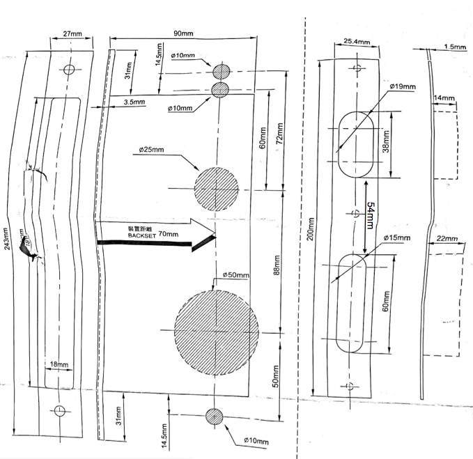 - If handle is on the left hand side (seen from outer door side) place the spring and the metal plate like below.