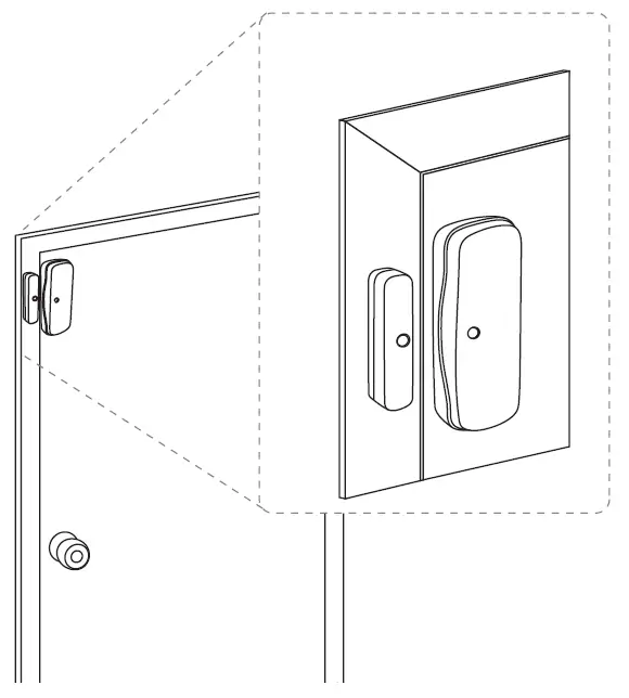 The device consists of a magnet which has to be mounted at the moving part of the door or window and of the main part which has to be mounted at the fixed part. The devices can be mounted by screws or mounting tape.