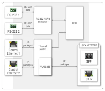 matrix can be created with UBEX devices connected to the IP network as input and output endpoints. The established virtual matrix is necessary to be controlled by the MMU also connected to the Ethernet switch.