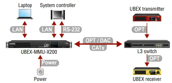UBEX-MMU-X200 Matrix Management Unit connected to the network.