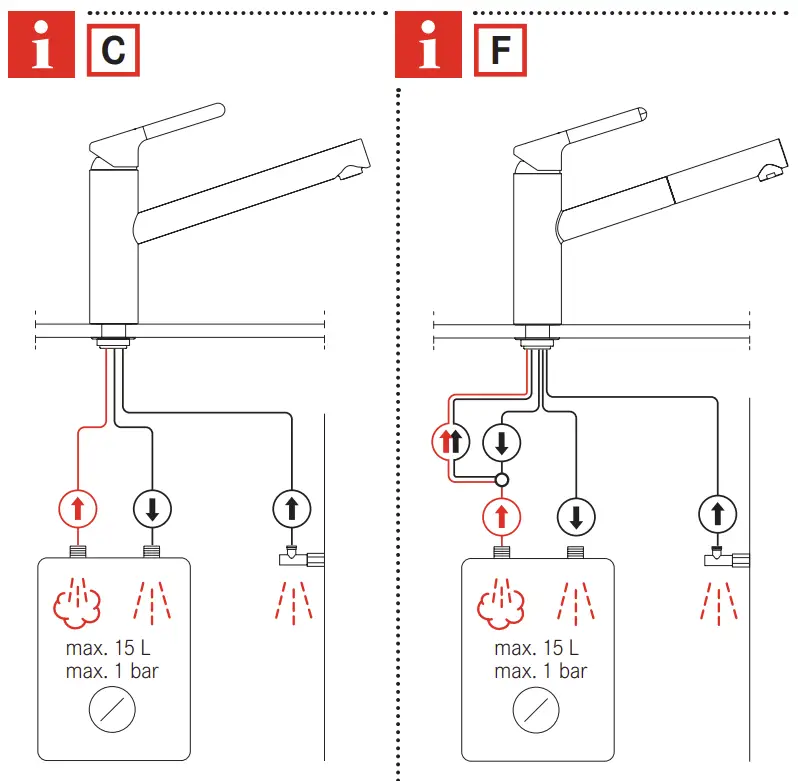 Mount these only by hand. - Flush all pipes thoroughly before installation.