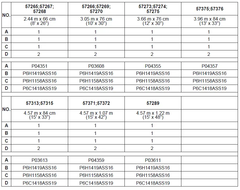 - We strongly recommend the pool is disassembled during the off season (winter months). Store in a dry location out of children’s reach.