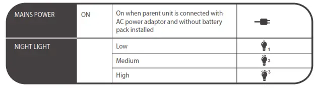 • If the baby unit is run on batteries the nightlight will fade out after 5 minutes. If is run from the mains