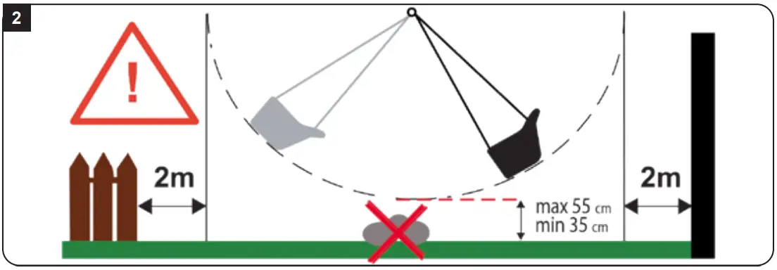 - The distance between the lower edge of the swing seat and the ground should be at least 35 cm and at max. 55 cm.