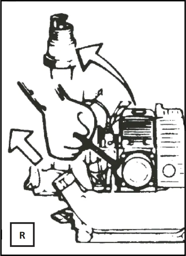 Neither overfill nor spill the fuel on the engine, always use a mixture of unleaded 95octane gasoline and special type 2-stroke engine oil for air-cooled motors (add 25ml of special type 2-stroke engine oil for air-cooled motors for each one litre of unleaded 95 octane gasoline).