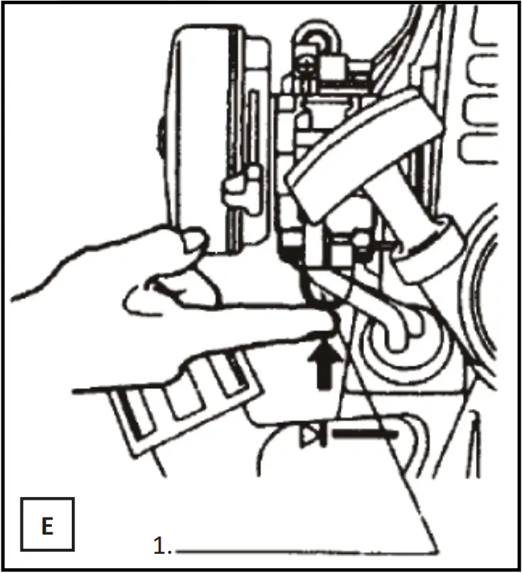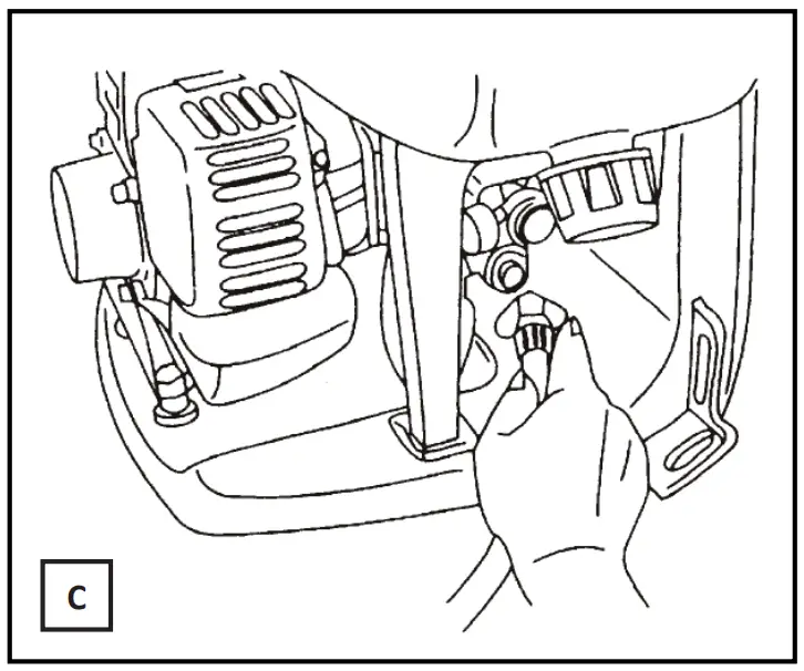 c) Pull the recoil starter out slightly and stop it in place where you fuel the pull starter (compression starts).