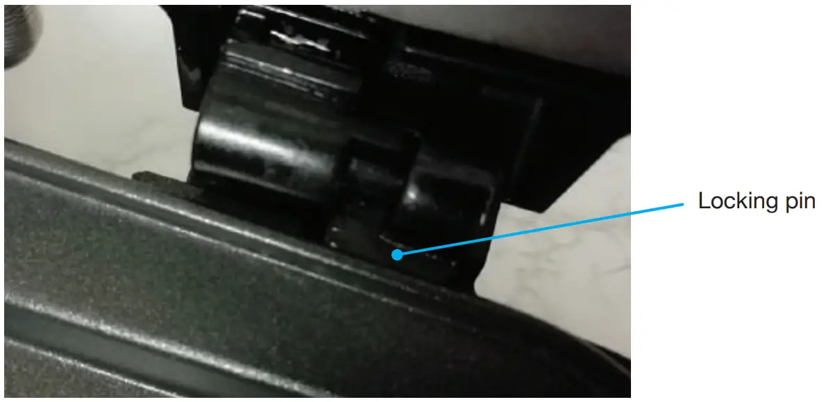 Slot the locking pins of the bottom baking plate to the hinges and press down the plate to lock in place. You should hear a clicking sound to confirm it is in place. Do the same for the top cooking plate.