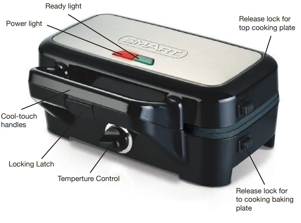 Before assembling or disassembling anything, unplug the SMART Waffle/Grill 3-in-1 and wait until the appliance has cooled down completely.