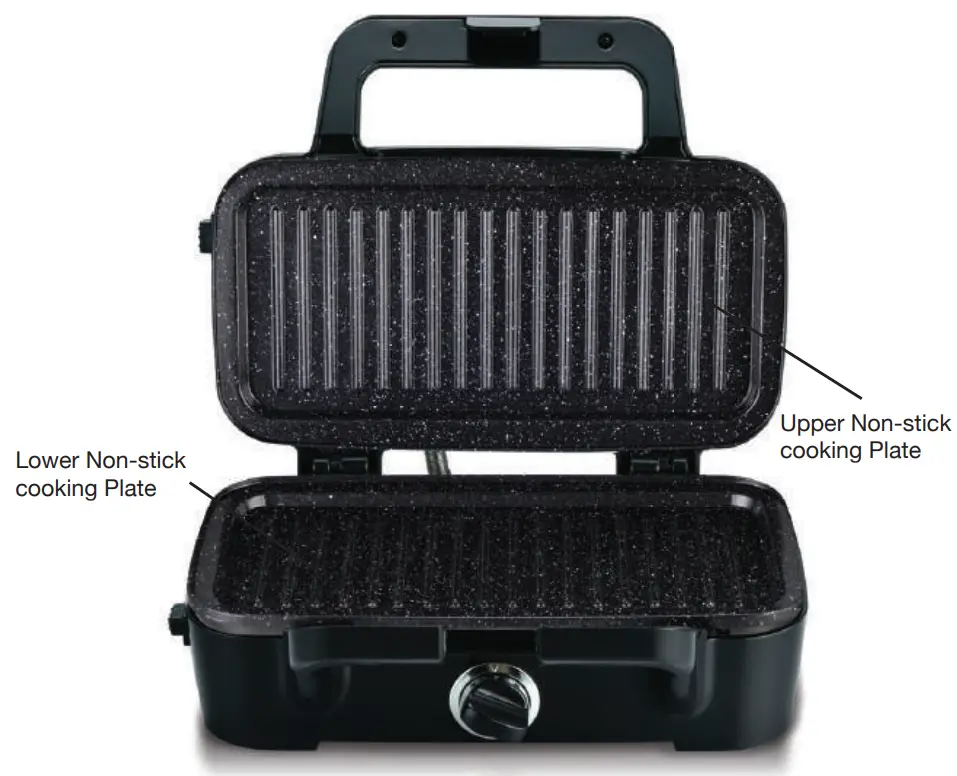 Caution: Do not let the cooking plates come into contact with any metal cutlery or ill other metal objects to avoid damaging of the anti stick coating.