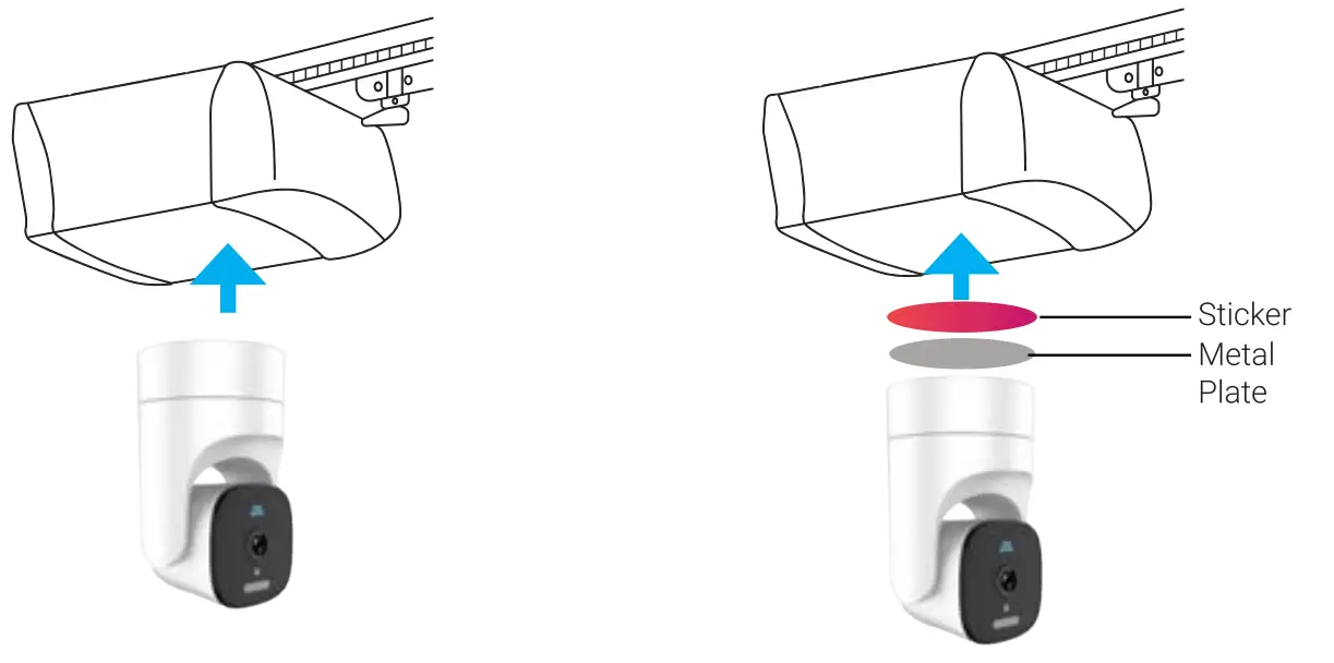 - It’s recommended to have Niro®2 attached from the bottom of your garage opener using the magnetic base. You may use the provided sticker and metal plate to attach the device to the garage opener if the opener does not have a metallic bottom.