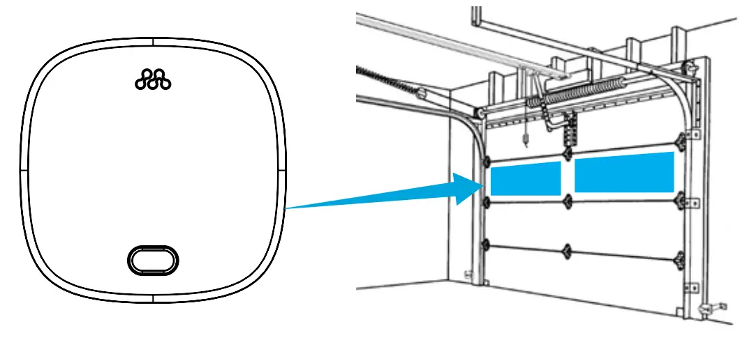 - Remove the film from the sticker on the back of the sensor. Place it on the left or right section of your garage door as illustrated above.