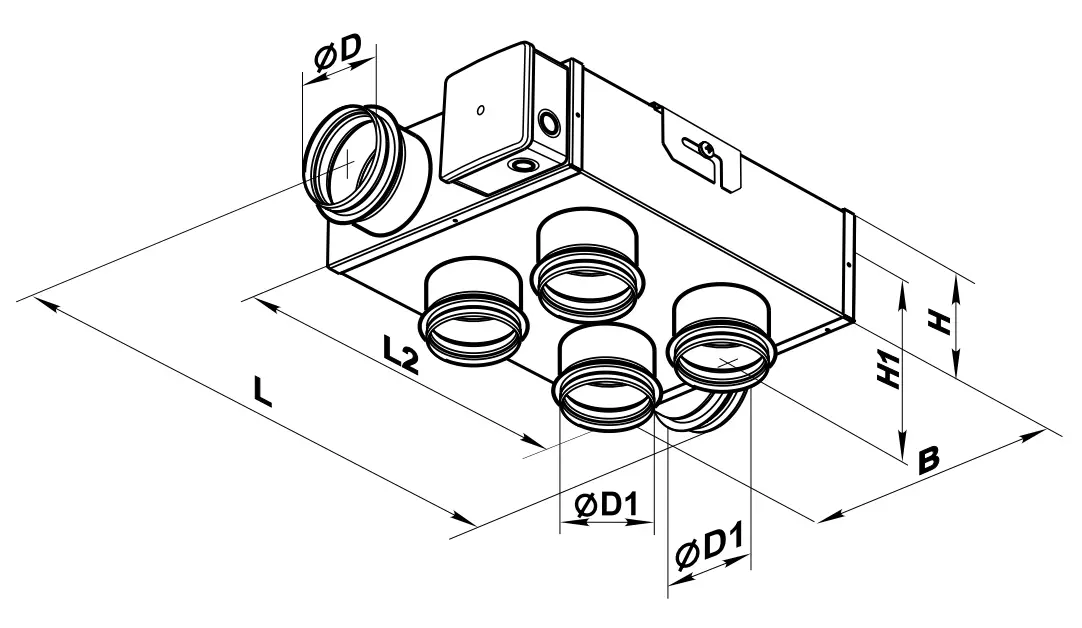 | Ø D | Ø D1 | B | H | H1 | L | L1 | L2 | |||