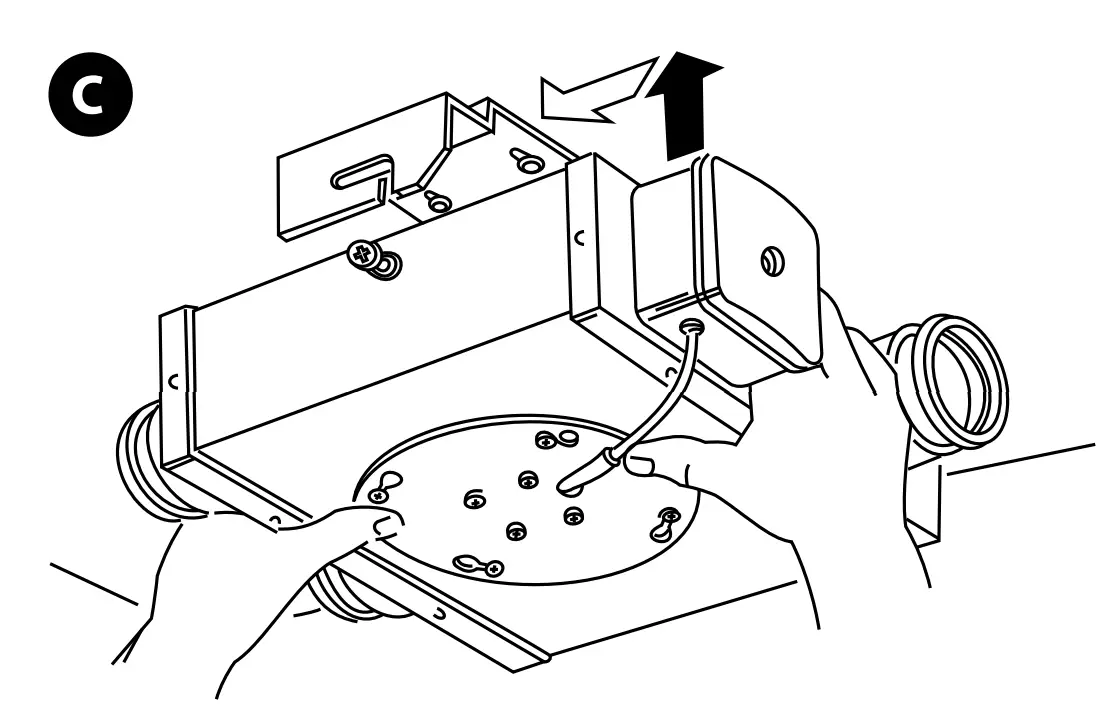 - Install the fan on the fixing bracket (Fig. c).