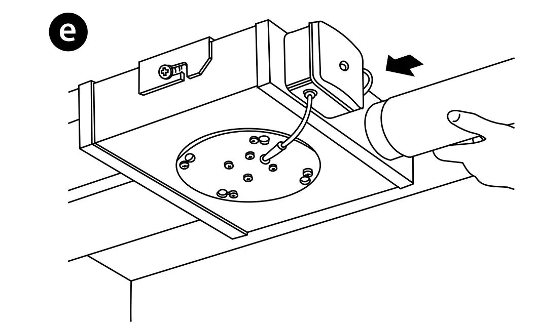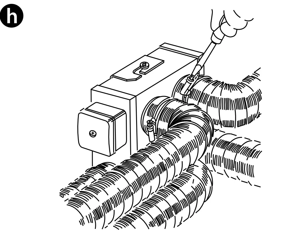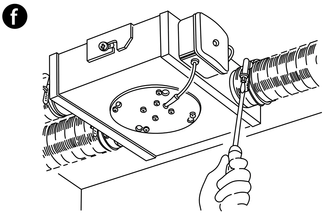 - Connect the air ducts to the fan spigots (Fig. e).