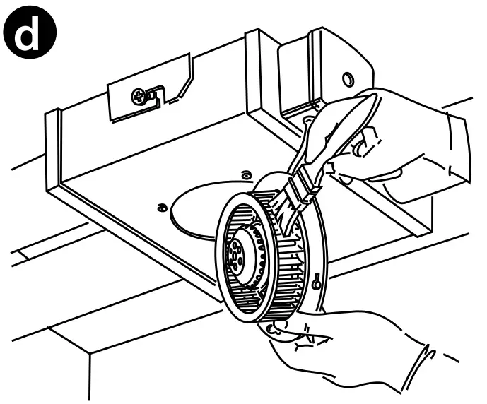 - Clean the impeller blades using a dry brush or a vacuum casing (Fig. d).