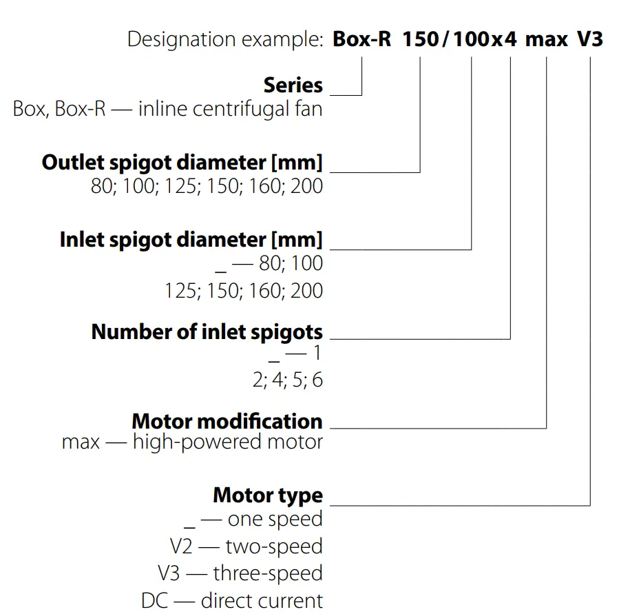 | Box-R 150 V2 | 1 | 230/50 | 98 | 0.43 | 356 | 750 | 45 | +50 |