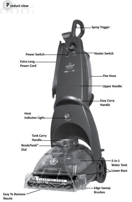 Your BISSELL PROheat 2X deep cleaner is a home cleaning system that uses the power of heat, brushes, and cleaning formula to get the deep-down dirt for a maximum clean. Not only does it with come several unique features, it has been designed with you, the customer, in mind.