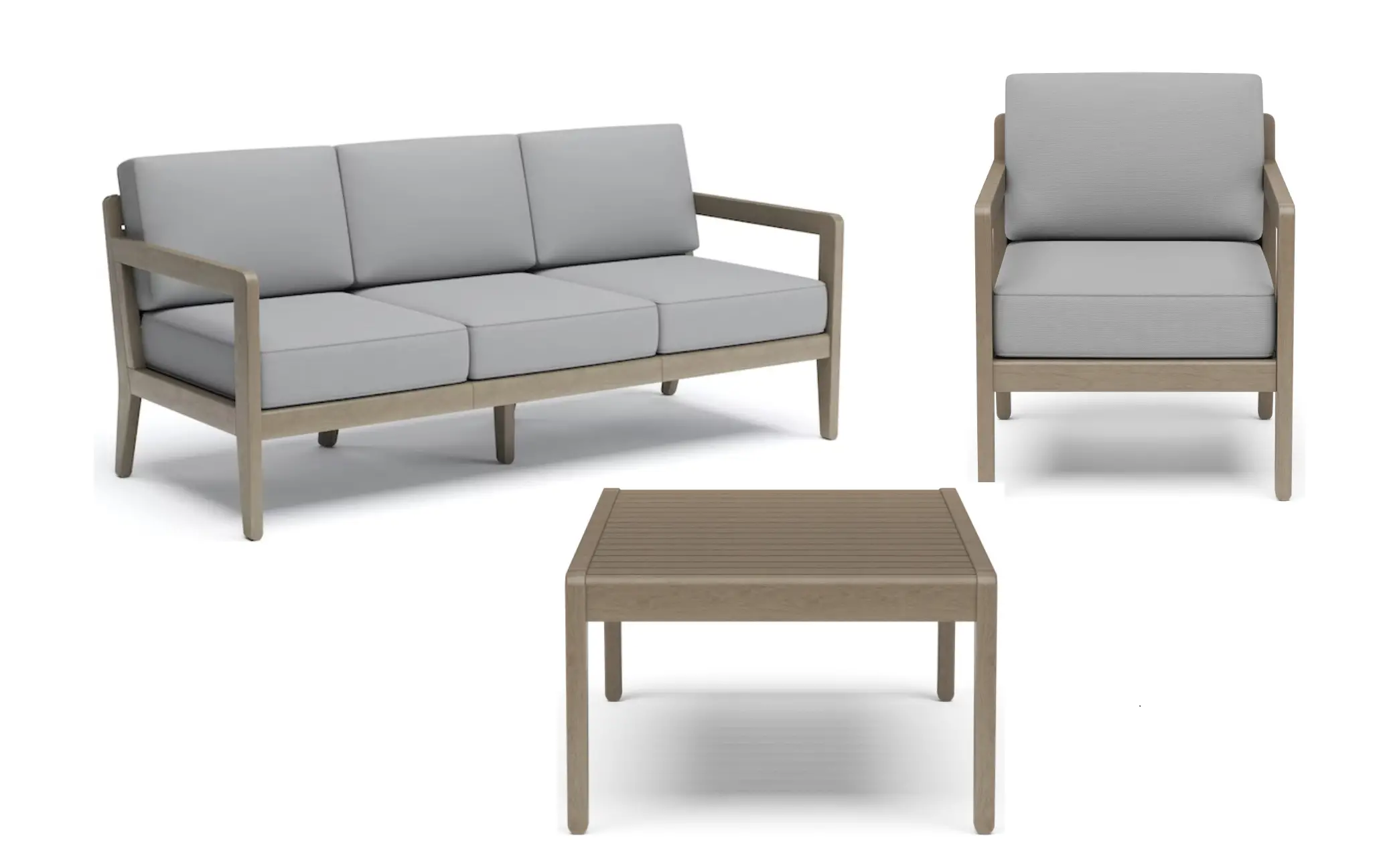 If left untreated, this furniture will turn a grayish color. Light sanding can restore the original color after which linseed oil can be applied. Fine surface cracks may occur over time from weathering, but these won’t affect the structural integrity of the furniture.
