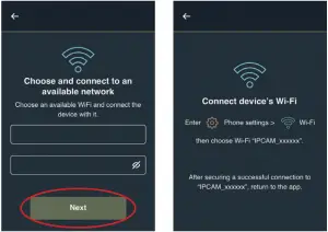 Note: For a new camera, connect to the camera’s WIFI first and add