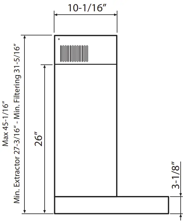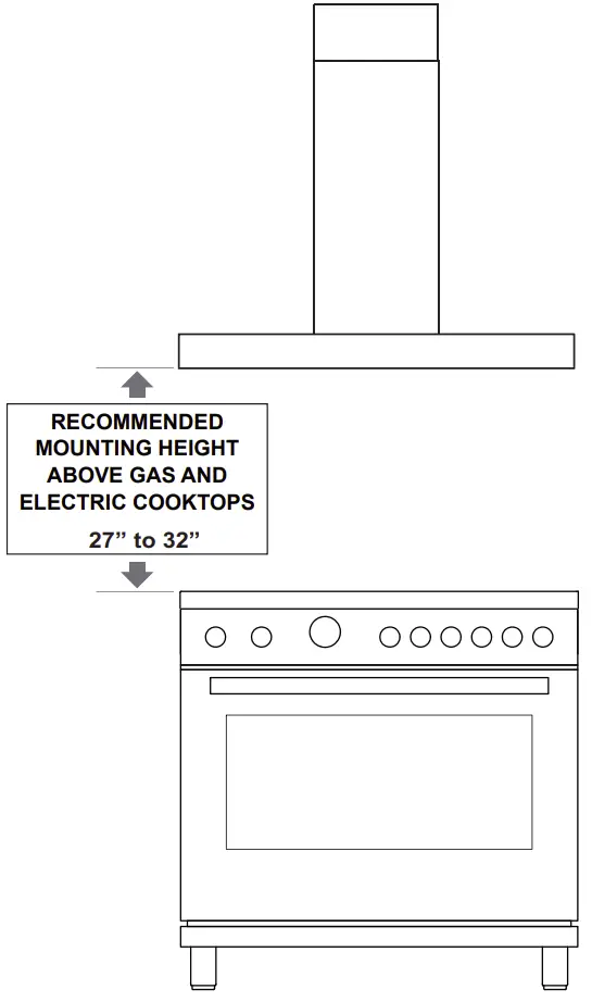 It is important to install the hood at the proper mounting height. Hoods mounted too low could result in heat damage and fire hazard; while hoods mounted too high will be hard to reach and will lose its performance and efficiency.
