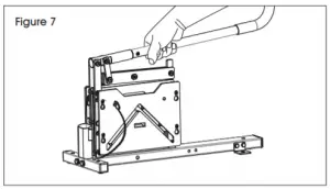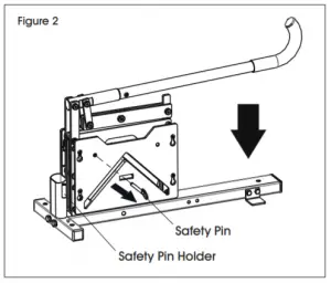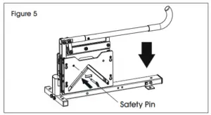 Figure 4 - When done cutting, press the handle down and insert safety pin to lock handle movement. (See Figures 5-6)