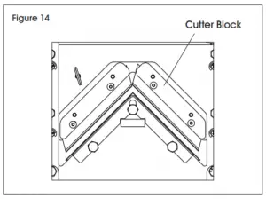 - Put cutter blocks back. Fasten two screws and washers. Repeat previous steps for blade on opposite side. (See Figure 14)