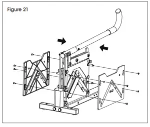Figure 20 - Put handle down. Re-install protective shield. Replace and tighten all screws. (See Figure 21)