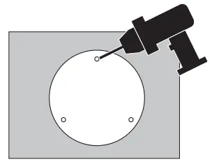 Stick the mounting template to the desired mounting place. Drill 3 screw holes and 1 cable hole according to the template.