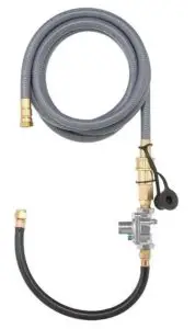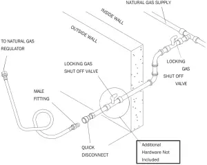 - It is recommended that a shut off valve be installed at the gas supply source outdoors. Install the valve at a point after the gas pipe exits the outside wall and before the quick disconnect hose, or install it at the point before the gas line piping enters the ground. See Figure 1 ( Page #8).