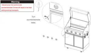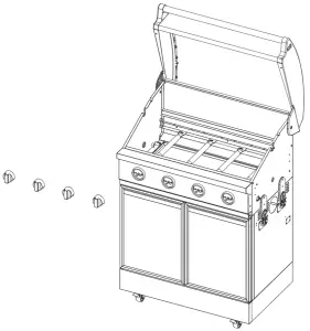 - Reinstall the four flame tamers, two cooking grates, and warming rack