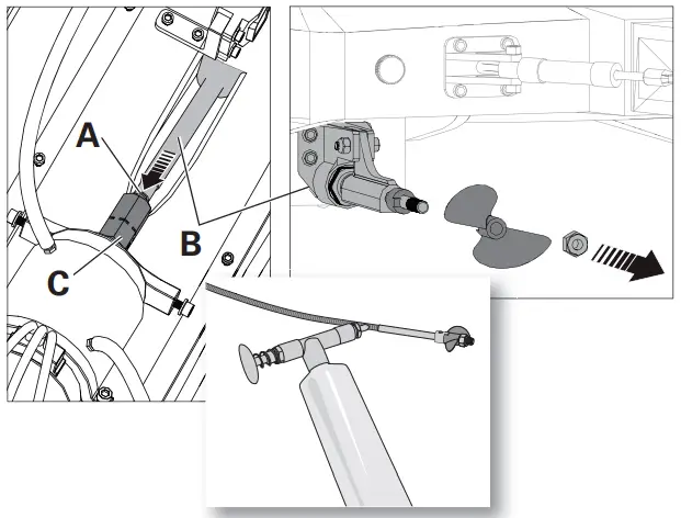 - Remove the flex shaft and all moving parts. Dry and lubricate parts after every 15 minutes of operation or if the boat becomes submerged.