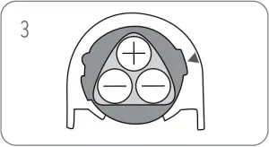 - Insert 3 AA batteries as shown.