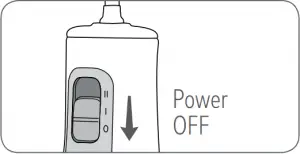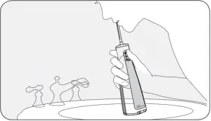 Lean low over sink and place the tip in mouth. Aim the tip toward teeth, and turn the unit ON (l).
