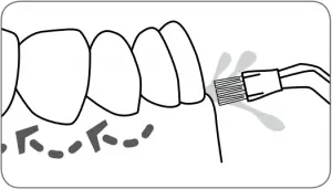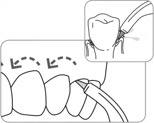 For best results, start with the back teeth and work toward the front teeth. Glide tip along gumline and pause briefly between teeth. Continue until you have cleaned the inside and outside of both the upper and lower teeth.