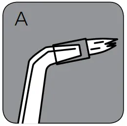 The Pik PocketTM tip is specifically designed to deliver water or anti bacterial solutions deep into periodontal pockets. To use the Pik PocketTM tip, set the unit to the lowest pressure setting. Place the soft tip against a tooth at a 45 degree angle and gently place the tip under the gumline, into the pocket.